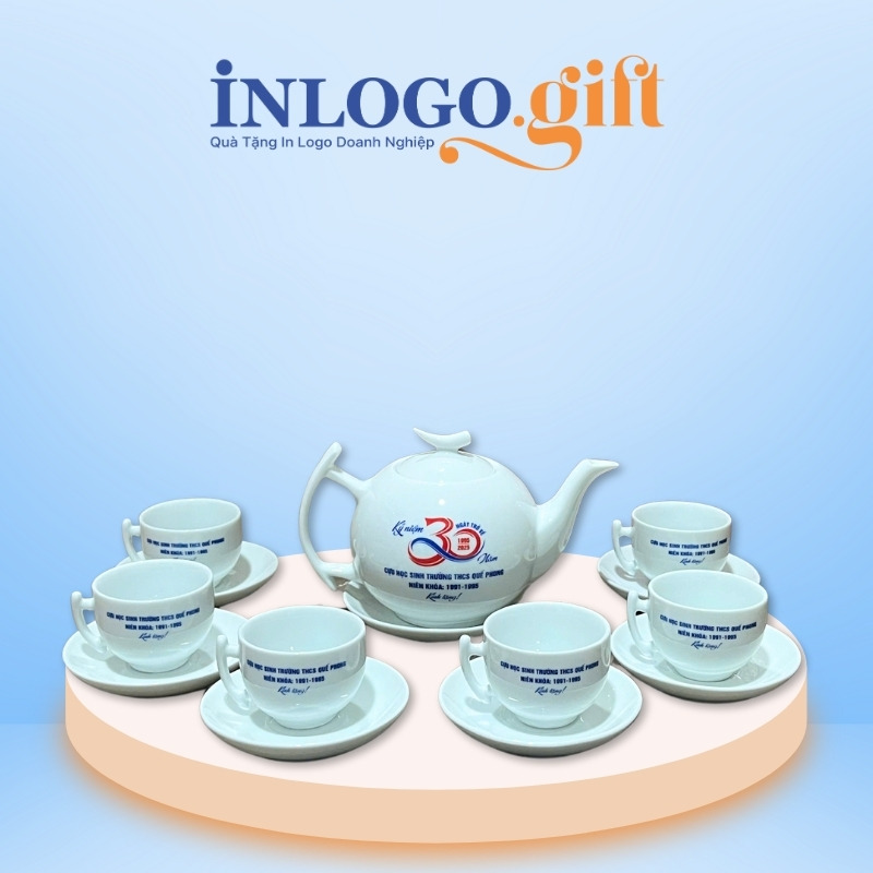 Mẫu ấm chén in logo làm quà tặng kỷ niệm 30 năm ngày trở về trường