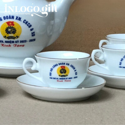 Logo in rõ nét và ấn tượng trên ấm và chén của bộ sản phẩm
