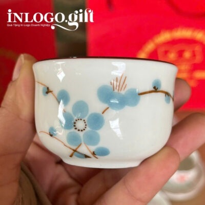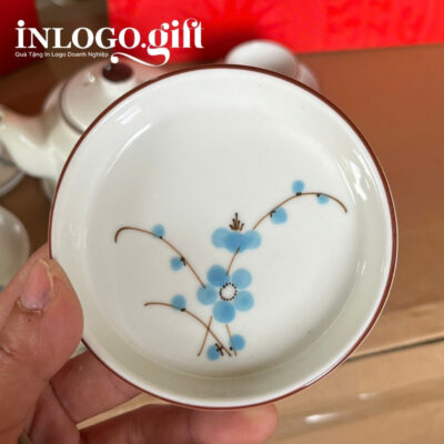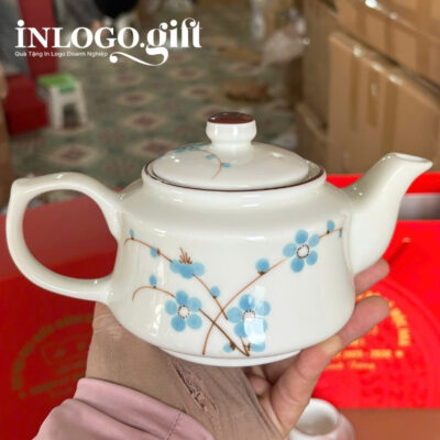 Với chất liệu gốm sứ trắng bền đẹp, hoa văn hoa mai xanh thanh nhã cùng hộp xi lót lụa sang trọng, bộ ấm trà quà tặng in logo vừa mang tính thẩm mỹ vừa thể hiện sự trân trọng với người nhận.
