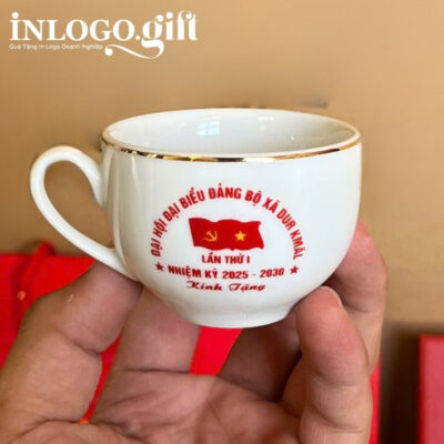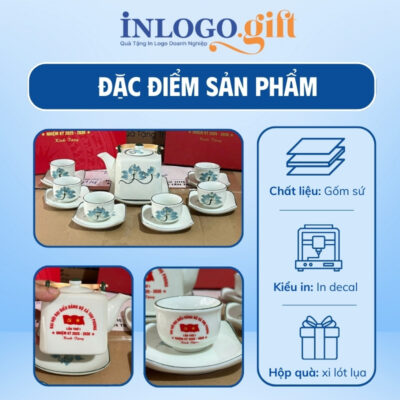 Với chất liệu gốm sứ trắng tinh khôi, kiểu dáng thanh thoát, cùng logo in decal sắc nét, sản phẩm không chỉ là vật dụng thưởng trà mà còn mang giá trị kỷ niệm và tri ân sâu sắc.