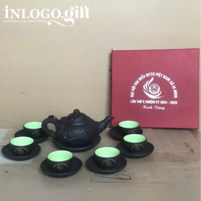Bộ ấm chén quà tặng Đại hội in logo tử sa nắp sen 500ml không chỉ là vật dụng thưởng trà mà còn là món quà tinh tế, mang ý nghĩa tri ân và lưu niệm bền vững cho những sự kiện trọng đại.