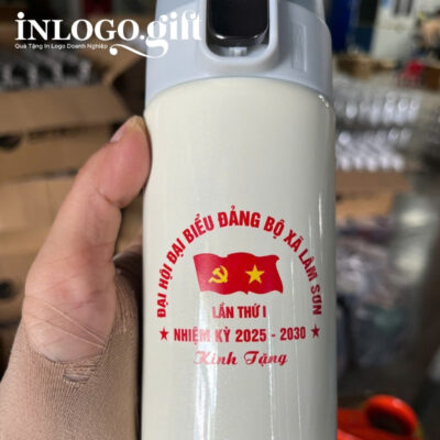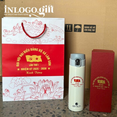 InLoGo.Gift đã cá nhân hóa mẫu bình này với logo Đại hội Đại biểu Đảng bộ xã Tuy Phong khóa I – Nhiệm kỳ 2025-2030, tạo nên món quà sang trọng, trang trọng và đầy ý nghĩa để dành tặng đại biểu và khách mời.