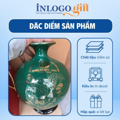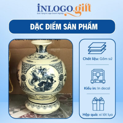 Với chất liệu gốm sứ trắng cao cấp, họa tiết hoa sen tinh xảo, kết hợp đường viền vàng kim sang trọng, bình hút lôc in logo không chỉ là vật trang trí mà còn là biểu tượng của sự thịnh vượng, an khang.