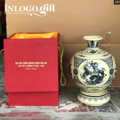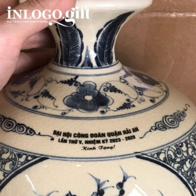 In logo lên bình hút lộc quà tặng Đại hội vàng hanh men rạng 18cm LH-11 là dòng sản phẩm gốm sứ cao cấp, mang lại sự tinh tế và ý nghĩa phong thủy trong từng chi tiết.