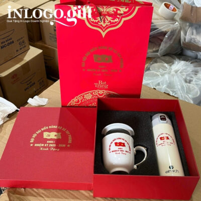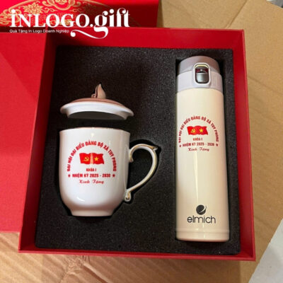 In logo lên set quà tặng Đại hội 2 món ly sứ và bình giữ nhiệt BGS-40 là sự lựa chọn hoàn hảo cho các chương trình tri ân, hội nghị và đặc biệt là những dịp Đại hội Đảng bộ.