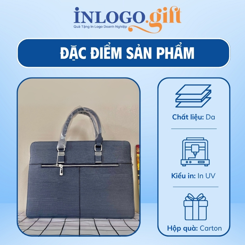 Cặp da in logo màu xanh dương 39x29x7cm CD-01 là món quà tặng doanh nghiệp cao cấp, tinh tế và giàu tính ứng dụng, phù hợp trong nhiều sự kiện như hội nghị, tri ân khách hàng hay tặng nội bộ.