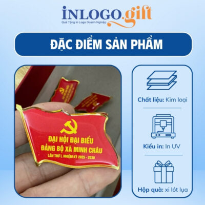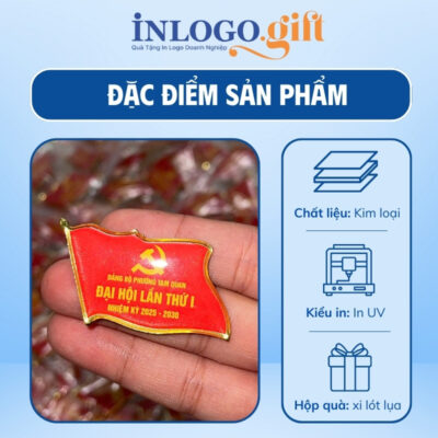 - Huy hiệu kim loại: Sản phẩm mang lại vẻ sang trọng và đẳng cấp cho thương hiệu. Chất liệu này rất bền, thích hợp làm quà tặng cao cấp hoặc huy hiệu chức danh.