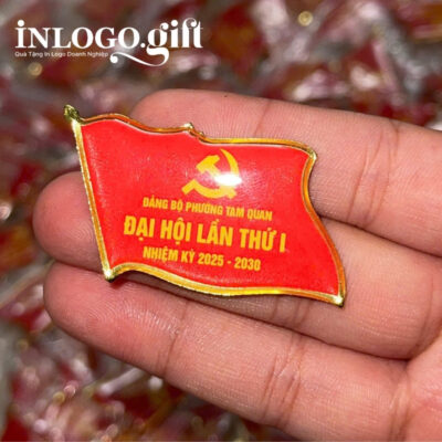 Quà tặng Đại Hội huy hiệu in logo đổ keo màu đỏ HH-05 là dòng sản phẩm lưu niệm sang trọng, thích hợp để tặng trong các sự kiện chính trị, hội nghị và đại hội quan trọng.
