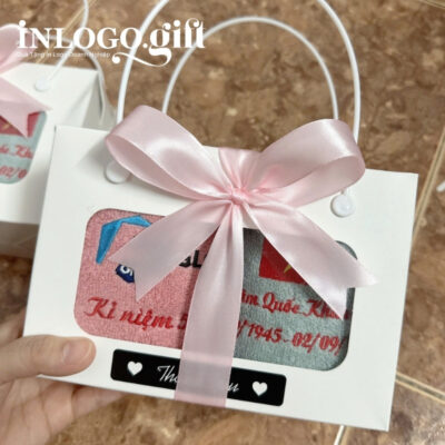 Với chất liệu vải mềm mịn, tông màu xám và hồng tinh tế cùng logo thêu sắc nét, set khăn quà tặng không chỉ là món quà hữu ích mà còn mang giá trị tinh thần sâu sắc. InLoGo.Gift mang đến giải pháp quà tặng doanh nghiệp đẳng cấp, phù hợp dành tặng Đại biểu, đối tác và khách mời danh dự trong các sự kiện trọng đại của cơ quan, tổ chức.
