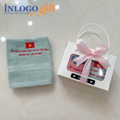 Set khăn quà tặng Đại hội thêu logo vải 2 màu xám và hồng không chỉ là món quà hữu dụng mà còn chứa đựng giá trị tinh thần, đánh dấu dấu ấn lịch sử 80 năm Quốc Khánh nước Việt Nam.