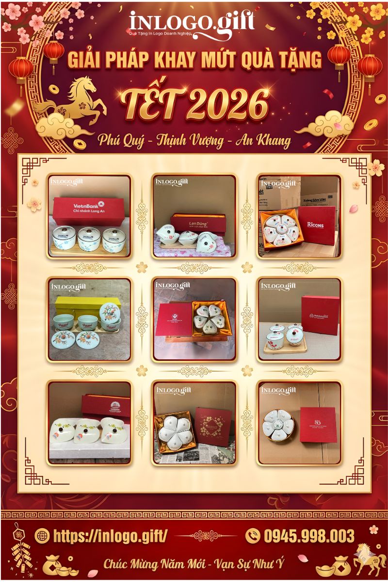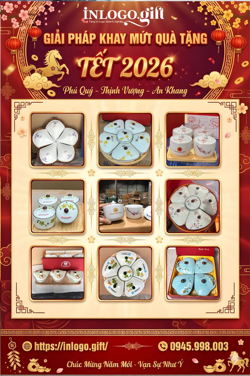 Với ý nghĩa sum vầy và trọn vẹn, khay mứt gốm sứ in logo là món quà không thể phù hợp hơn cho dịp Tết Nguyên Đán, giúp doanh nghiệp gửi gắm lời chúc một năm mới an khang, thịnh vượng đến người nhận.