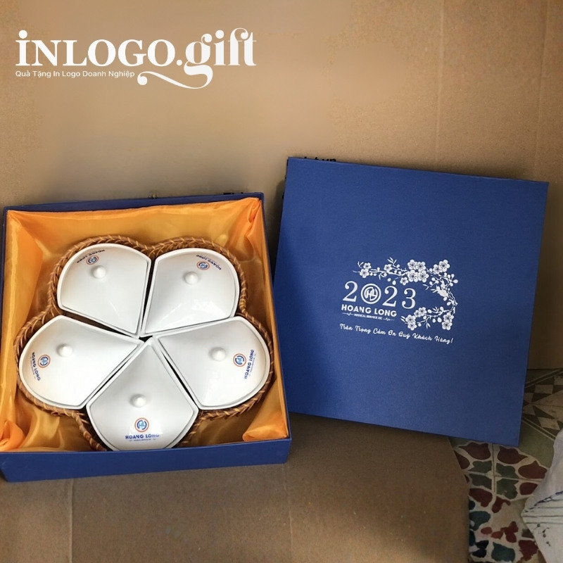 Khay mứt in logo 5 cánh hoa khế màu trắng là giải pháp quà tặng sáng tạo dành cho mùa Tết, kết hợp hoàn hảo giữa giá trị sử dụng thực tế và thông điệp thương hiệu tinh tế. Đây không chỉ là một vật phẩm trang trí trên bàn khách ngày xuân, mà còn là cầu nối giúp doanh nghiệp thể hiện sự trân trọng và gắn kết với đối tác, khách hàng. Được chế tác từ làng gốm Bát Tràng danh tiếng, mỗi bộ khay mứt là một lời chúc sung túc, đủ đầy, được cá nhân hóa một cách chuyên nghiệp bởi InLogoGift, giúp nâng tầm hình ảnh thương hiệu trong dịp đặc biệt nhất năm.
