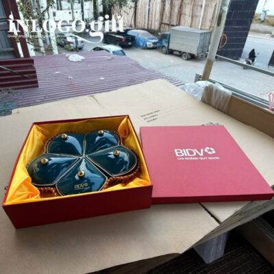 InLogoGift mang đến giải pháp quà tặng toàn diện, giúp doanh nghiệp dễ dàng triển khai các chiến dịch của mình. Với số lượng đặt hàng tối thiểu hợp lý và thời gian sản xuất được tối ưu, chúng tôi đảm bảo tiến độ cho mọi kế hoạch. Mỗi bộ khay mứt đều được đóng gói cẩn thận trong hộp xi đỏ sang trọng, sẵn sàng để trao tay người nhận, thể hiện sự chu đáo và chuyên nghiệp của doanh nghiệp bạn.