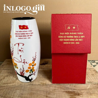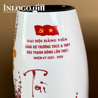 Đặc biệt, khi được in logo sự kiện Đại hội Đảng viên Đảng bộ Trường THCS & THPT Hậu Thạnh Đông, Nhiệm kỳ 2025-2038, lọ hoa trở thành món quà kỷ niệm giàu ý nghĩa.