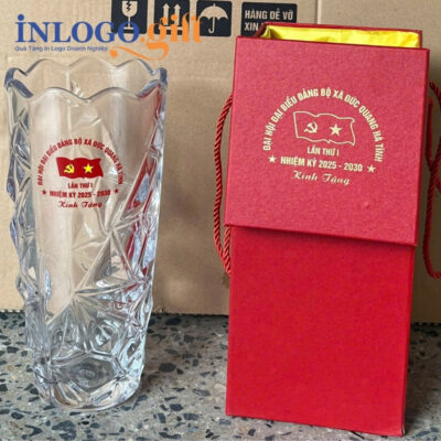 Với chất liệu thủy tinh cao cấp trong suốt, kiểu dáng miệng loe thanh lịch và hộp xi lót lụa sang trọng, bình hoa in logo làm quà tặng trở thành biểu tượng tri ân trong các sự kiện trọng đại.