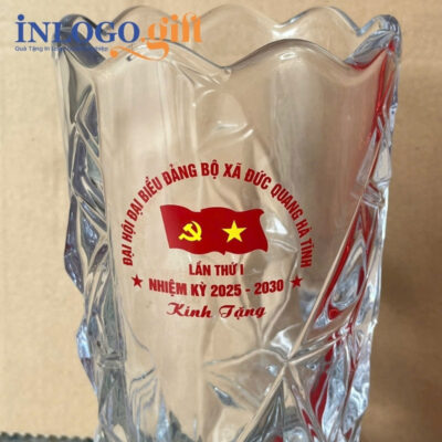 Lọ hoa nhiệt quà tặng Đại hội in logo dáng ly miệng loe 30cm không chỉ là vật phẩm trang trí mà còn là món quà tôn vinh giá trị tinh thần, ghi dấu ấn thương hiệu trong những dịp quan trọng.