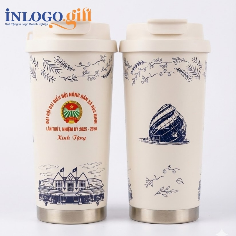 Ly giữ nhiệt in logo quà tặng đại hội màu trắng in phong cảnh Đà Lạt dung tích 500ml là giải pháp quà tặng chỉn chu và hữu ích, được InLogo.Gift thiết kế để lại ấn tượng sâu sắc trong các kỳ đại hội, hội nghị. Sản phẩm kết hợp giữa tính năng giữ nhiệt ưu việt và thiết kế mang đậm dấu ấn văn hóa, biến một vật dụng quen thuộc trở thành món quà lưu niệm đầy ý nghĩa. Với bề mặt trắng tinh tế làm nền cho các hoạ tiết phong cảnh Đà Lạt và logo sự kiện, chiếc ly này không chỉ phục vụ nhu cầu cá nhân mà còn là một công cụ lan tỏa hình ảnh chuyên nghiệp của ban tổ chức.