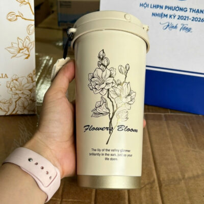 Ly giữ nhiệt quà tặng Đại hội in logo thương hiệu Flower 500ml LGN-13 là lựa chọn tinh tế trong bộ sưu tập quà tặng doanh nghiệp tại InLoGo.Gift.