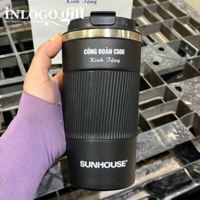 Hình ảnh thực tế mẫu ly giữ nhiệt in logo thương hiệu Sunhouse được InLogoGift cung cấp cho khách hàng