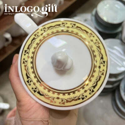Hoạ tiết viền vàng trên nắp và miệng của cốc sứ