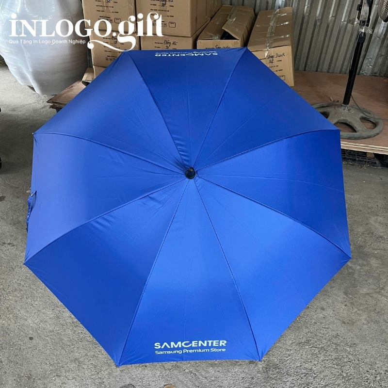 Ô dù in logo cán thẳng màu xanh dương bán kính 75cm là món quà tặng doanh nghiệp đẳng cấp và bền bỉ, thể hiện sự quan tâm chu đáo của công ty đến nhân viên, khách hàng nhờ tán dù rộng rãi mang lại khả năng bao phủ vượt trội. Với kết cấu khung xương vững chãi, sản phẩm quà tặng ô dù in logo trở thành người vệ sĩ đáng tin cậy giúp người dùng che nắng, che mưa an toàn và thoải mái trước mọi biến đổi khắc nghiệt của thời tiết. Đặc biệt, trên nền vải xanh dương trang nhã, logo thương hiệu sẽ được thể hiện một cách nổi bật và tinh tế, biến chiếc dù thành công cụ quảng bá hình ảnh mạnh mẽ mỗi khi được sử dụng ngoài trời.
